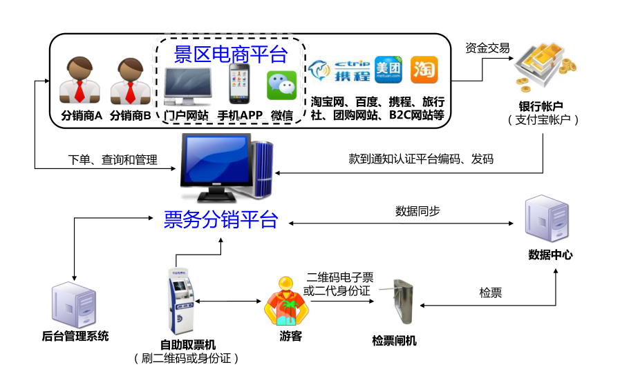 4、OTA平台,与已有旅游票务网站、淘宝/天猫、携程、去哪儿、驴妈妈、同程、途牛等数十家第三方网站对接无缝对接,实现电子门票自动销售发送和验证。